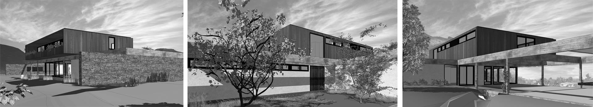 Casa Quintanilla Ubicación: La Florida, Santiago Superficie: 320 m2 Materialidad: Hormigón visto, piedra, cristal, acero corten Arquitectos: UNOATRES Arquitectos Cálculo: Alberto Ramírez Covo